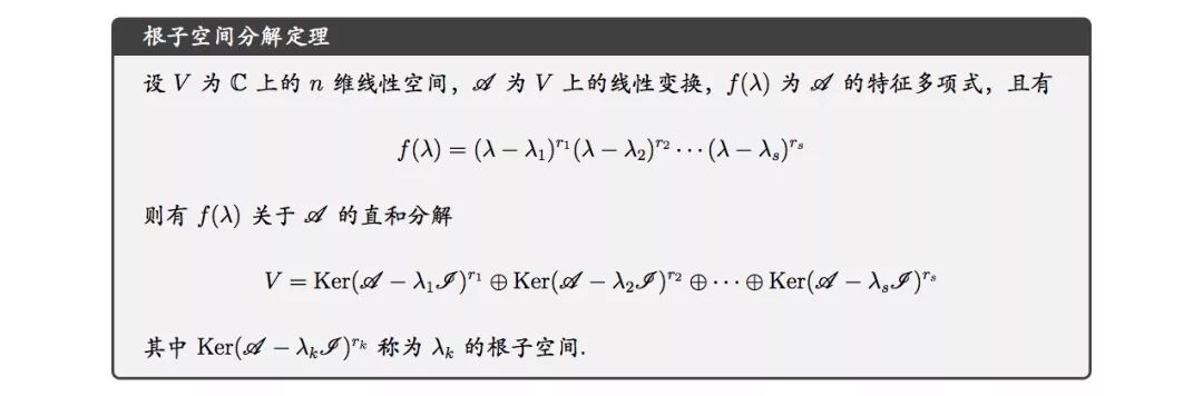 先给出所谓根子空间分解定理,这直接构成了Jordan标准型理论的基石