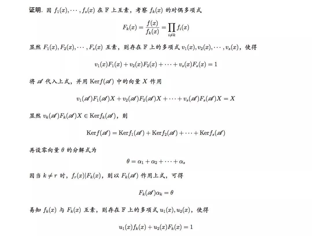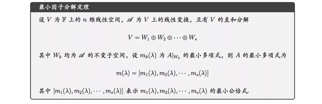 这篇文章是我很久以前写的,这是本科高等代数最重要也是最困难的定理之一,它揭示了标准性理论的核心,进而开启了用以简化复线性变换的Jordan标准型理论,我们这次重点介绍它的证明和一般数域下的定理形式.
